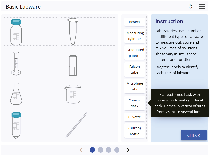 Learn to identify common pieces of lab equipment and understand their physical features and uses.