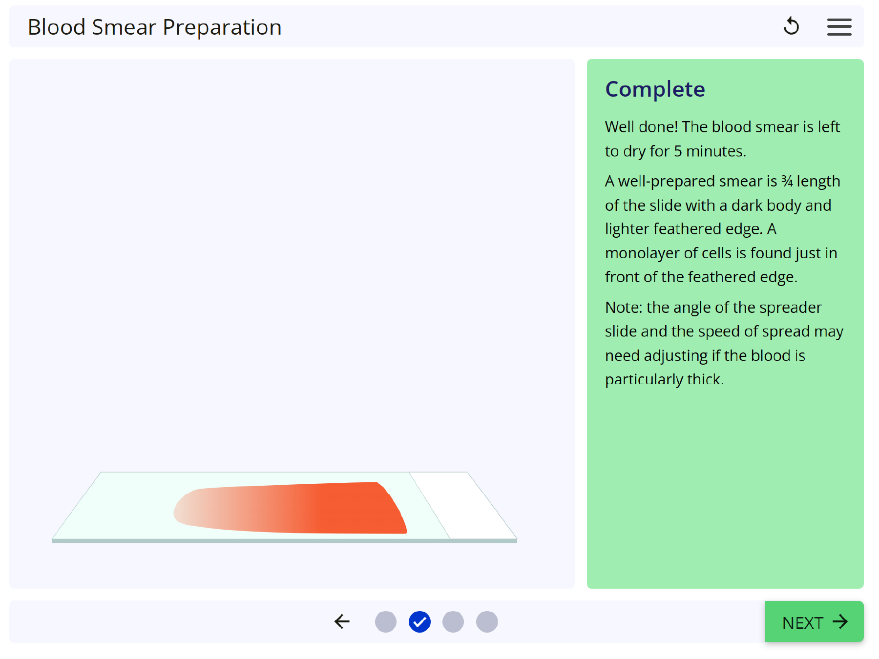 Learn about the equipment and steps involved in preparing a blood smear, and the decisions that need to be made during the process. Practise preparing a blood smear and identify the reasons for suboptimal smears.