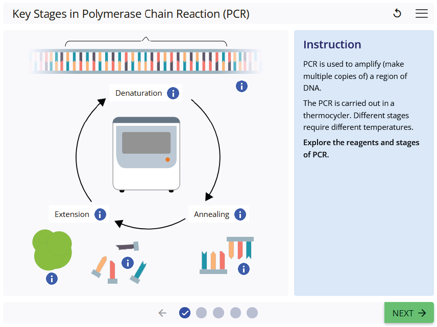 Learn about the key steps involved in a polymerase chain reaction. Explore each stage of a PCR cycle: denaturation, primer annealing, and primer extension.