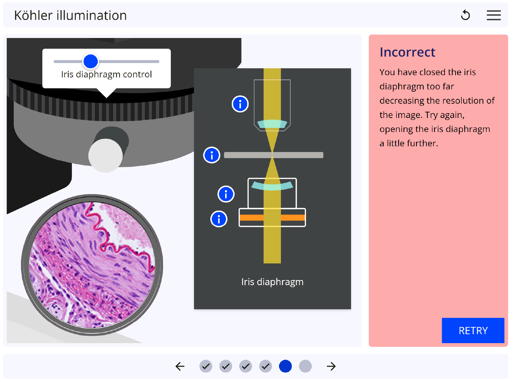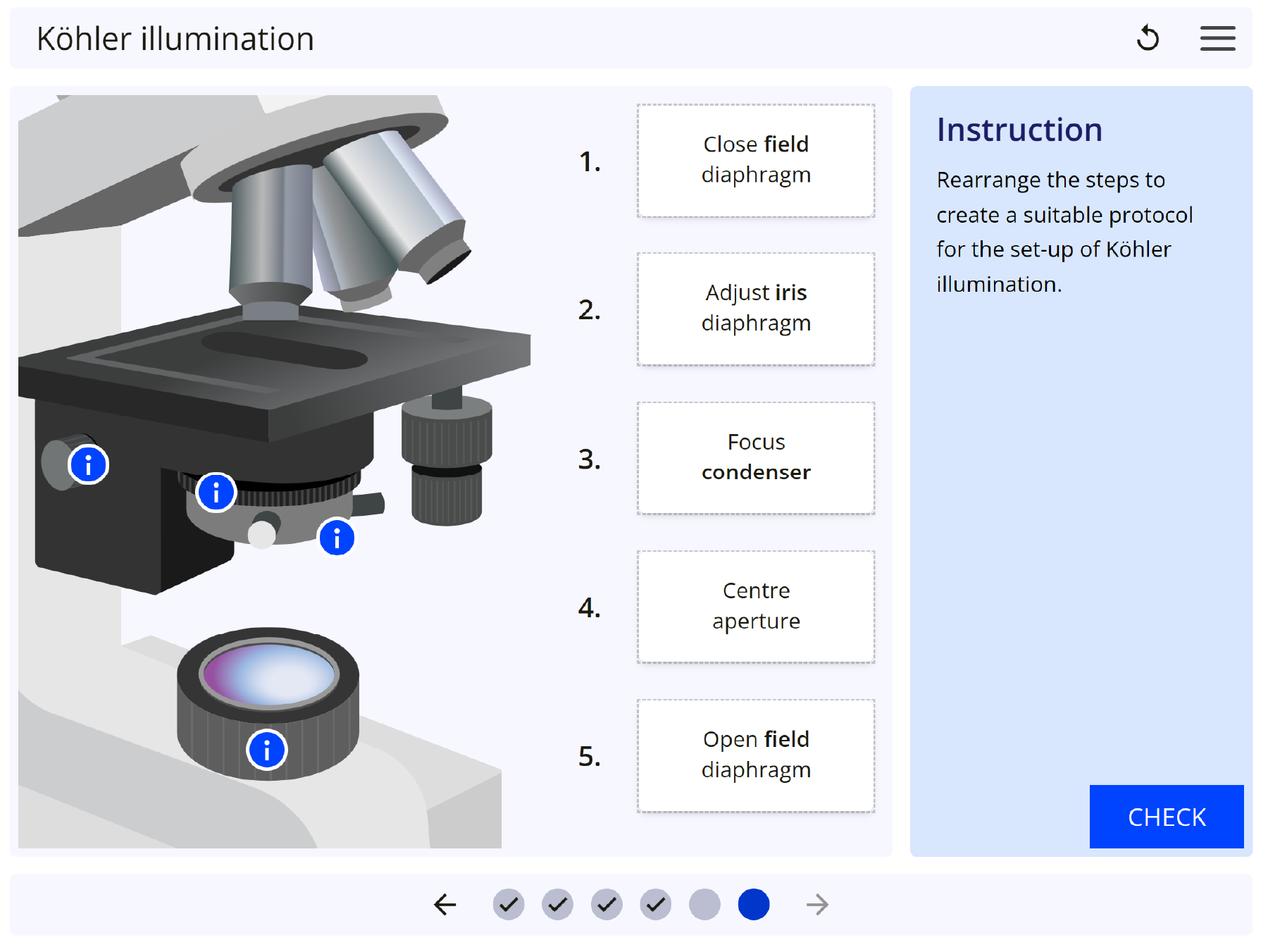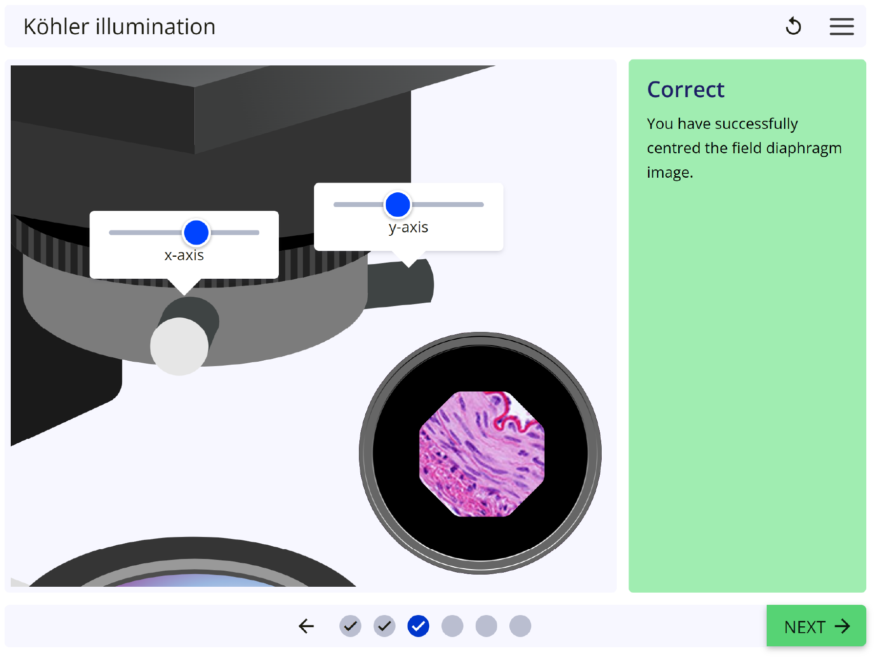 Learn about Köhler illumination and the benefits of using this technique. Familiarise yourself with the components of a microscope and how to adjust the light source for optimal imaging. Practise adjusting the diaphragm and condenser to achieve optimal contrast and resolution.