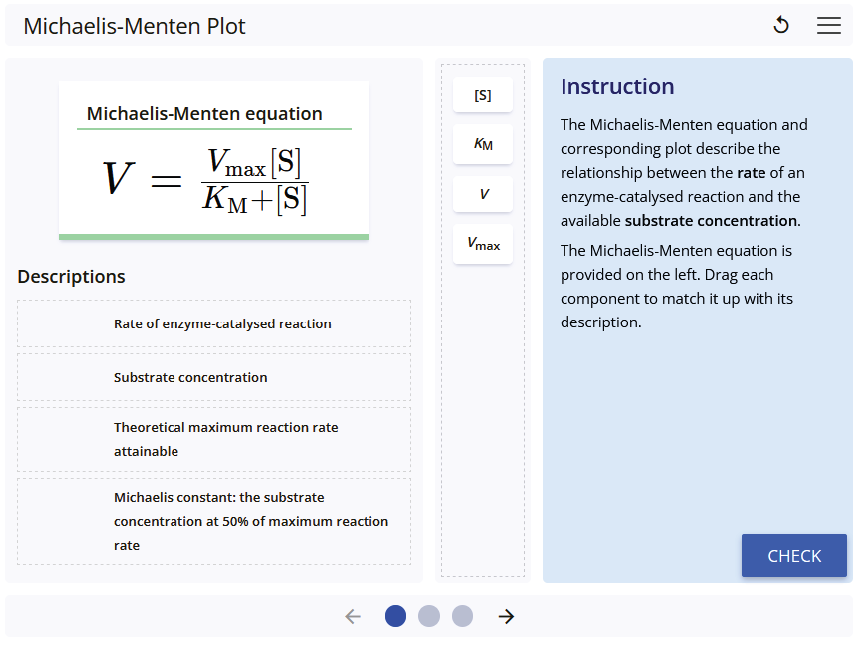Learn the main features of the Michaelis-Menten equation and Michaelis-Menten plots. Generate and analyse a Michaelis-Menten plot to determine Vmax and KM for an enzyme-catalysed reaction.