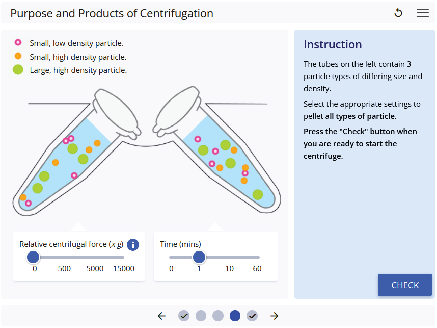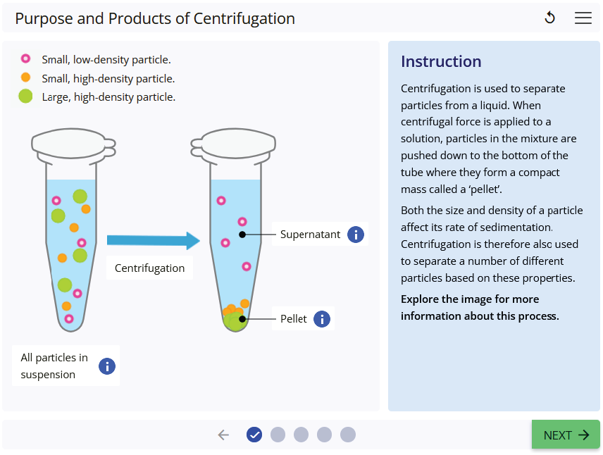 Learn the purpose of a centrifuge and key terms associated with the process of centrifugation. Practise setting a centrifuge up to separate particles of differing sizes and densities.