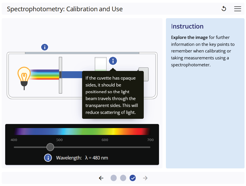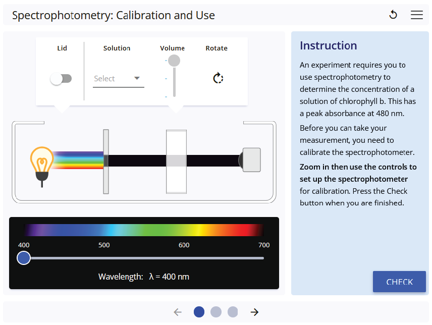 Practise calibrating a spectrophotometer and taking an absorbance reading. Understand the importance of factors such as wavelength, solution type, volume, and cuvette position.